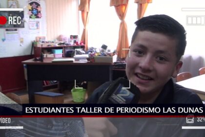 Equipo de Canal 2 en Taller de Periodismo de Escuela Villa Las Dunas